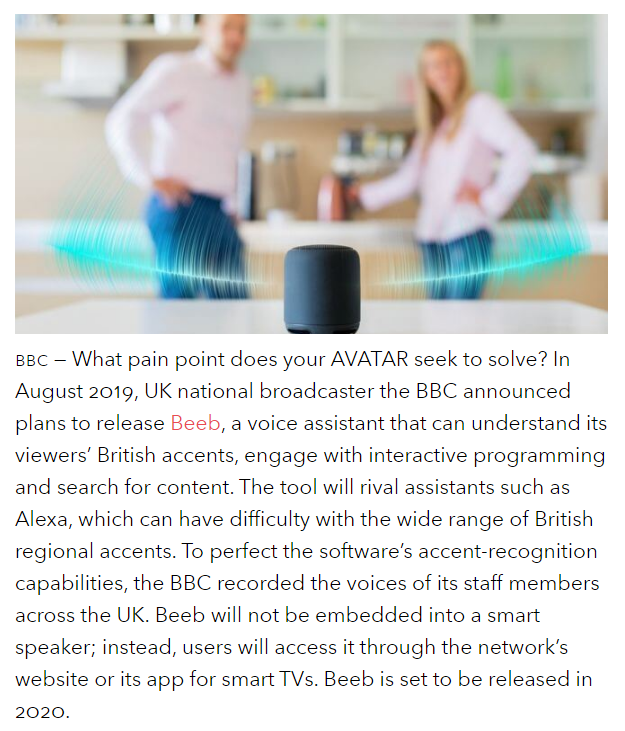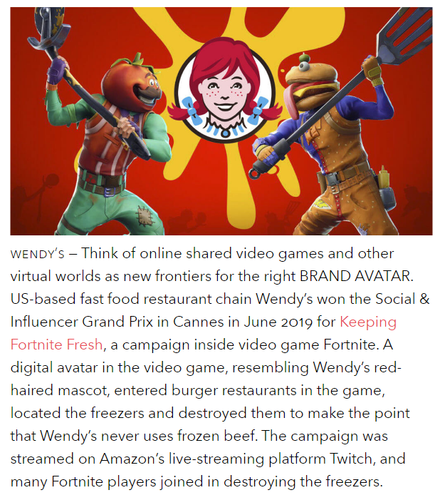 On the digital lives of your consumers, ask yourself: who do we want to reach with a new AVATAR? Crucially, what digital channels are these consumers living, working, playing inside? Will our AVATAR be about solving a serious pain point inside a traditional channel? The BBC made a new AI-fueled assistant that understands regional accents from across the UK. Will it be about playing alongside consumers in a way that enhances their experience of the channel: see Wendy’s and their AVATAR inside Fortnite.