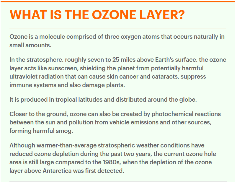 In the stratosphere, roughly seven to 25 miles above Earth’s surface, the ozone layer acts like sunscreen, shielding the planet from potentially harmful ultraviolet radiation
